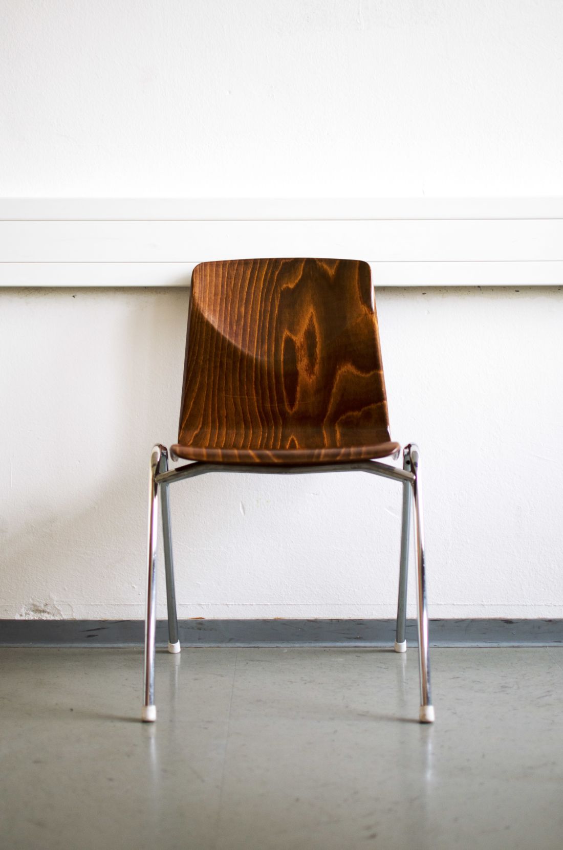 Diese Fotoserie zeigt eine Auswahl unterschiedlicher Klassensessel. Ich habe mich entschieden diese wie Schüler-Portraits zu fotografieren, um den Aspekt des Schulportraits hervorzuheben.